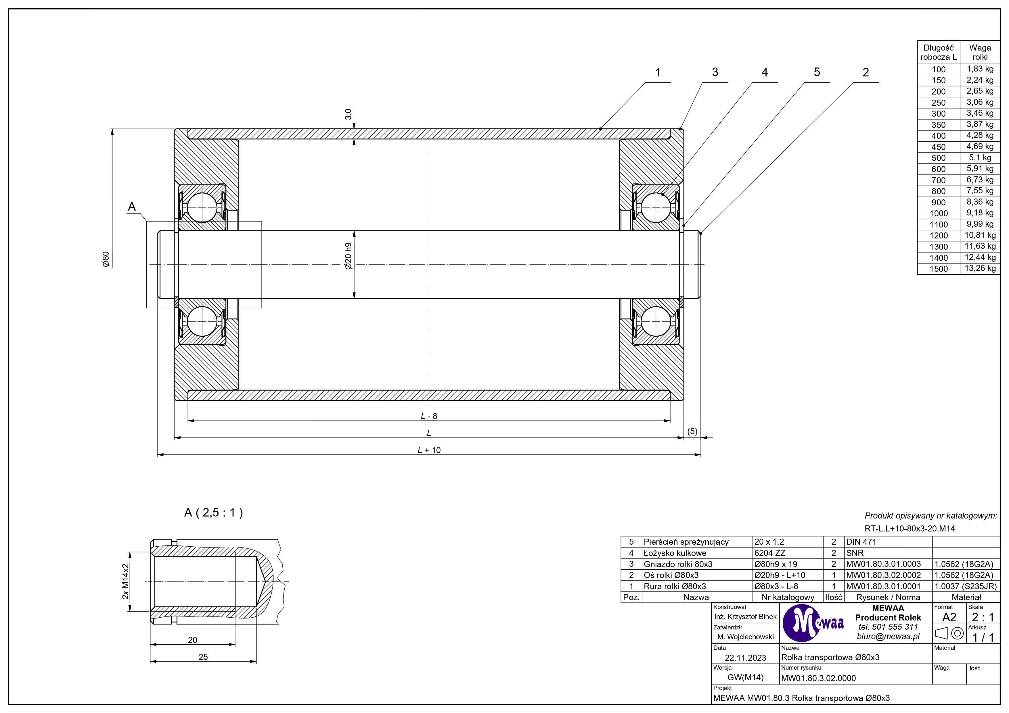 Solidnie wykonane rolki - dobrze spasowane łożyska zabezpieczone pierścieniami segera, niski opór toczenia rolki co sprawia, że rolka zachowuje dłużej nominalną sprawność. Rolki znajdują szerokie zastosowanie w podajnikach i taśmociągach w przemyśle metalowym i drzewnym. Wzmocniona oś ø20 wykonana z wytrzymałej stali 18g2. Rolki są wyposażone w łożyska kulkowe. Przeznaczenie rolek średnicy 80 mm i ścianką grubości 3 mm to przenoszenie dużych obciążeń. Obciążenie na jedną rolkę zależy od jej długości. Rolki występują w kilku wariantach mocowań widocznych na zdjęciach.